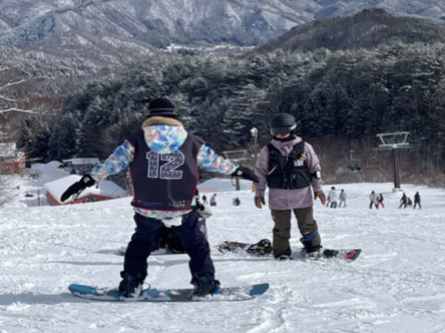 | ◆取得目標◆ 道具の正しい使用方法を学ぶ ゲレンデで安全に滑走するためのマナーとルールを覚える 安全な転び方・起き方を覚える 片足スケーティングから停止することを覚える 安全にリフトから降りることを覚える ボードをコントロールして安全な停止方法を覚える かかと側で左右に移動して停止することを覚える |